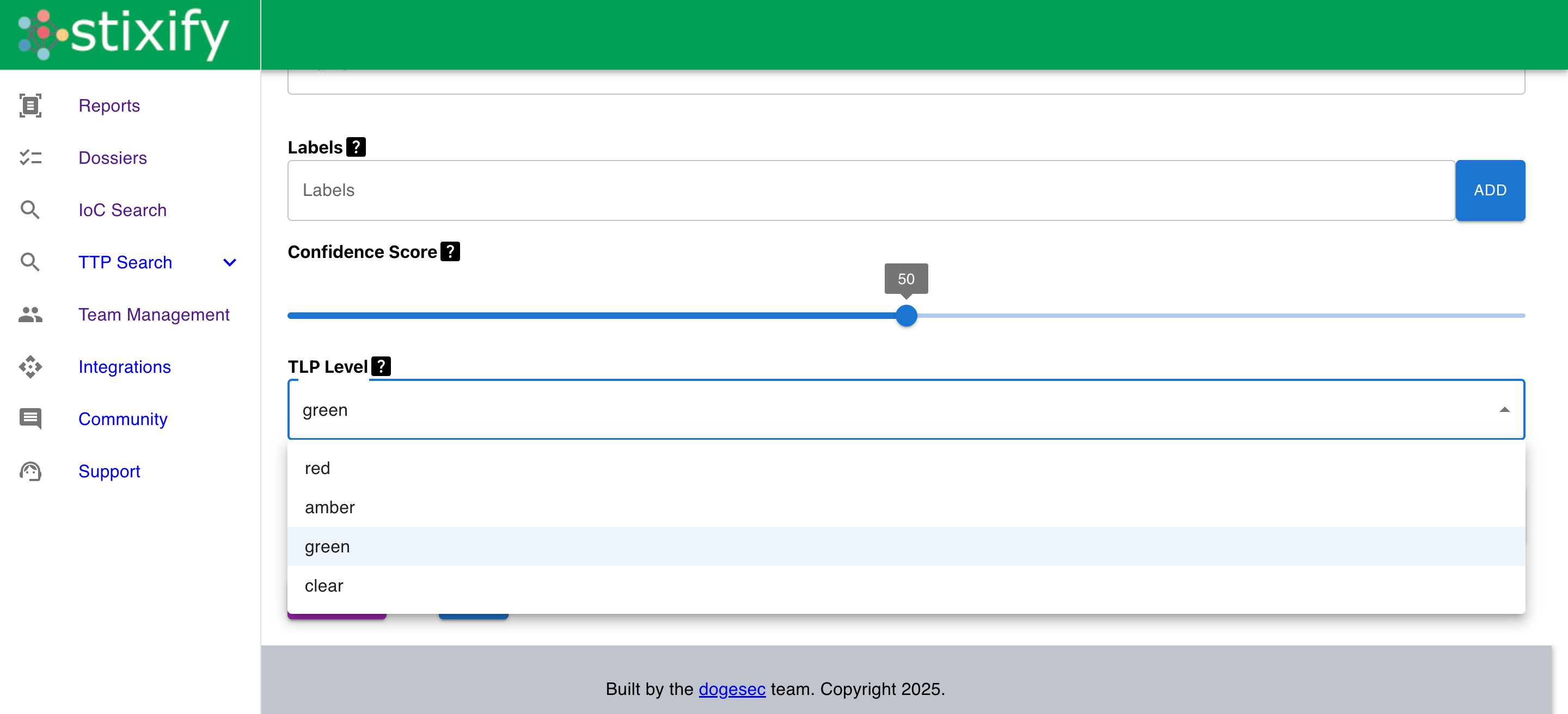 TLP:CLEAR, TLP:GREEN: Reports marked at these levels — along with all objects extracted from them — are visible to all Stixify users. Any logged-in user can discover these reports through Report Search or when searching for TTPs/IoCs.TLP:AMBER, TLP:RED: Reports with these markings, and all objects derived from them, are restricted to members of the team that owns the report. No other users will be able to see or search these items.We support all TLP levels to give users full control over downstream dissemination. Because TLP markings are stored as STIX Marking Definitions on each object, downstream systems consuming your STIX data can also enforce their own access-control rules based on these markings.